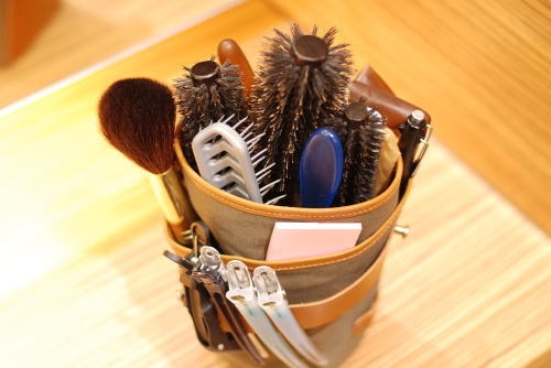 vina05サイズ:H180×W140素材:帆布×牛革収納量:ブラシ5本。コーム5本。ペン。タイマー。グローブ。ノート。フェイスブラシなど税込み価格:11,400円付属ベルト:18mm幅 2wayベルト チョコ他のカラー帆布とは:もともと帆船の帆に使用されていた生地を指しています。この帆に使用されている生地が非常に丈夫だということで、かばん生地やトラックの幌などに使用されました。綿帆布はいまでも帆やかばんなどに使用されています。別売り ホルダー4丁入り:3000円別売り: vina用ホルダー5丁入り:3500円