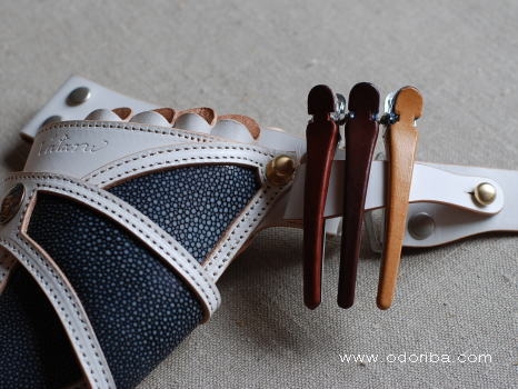 B-02 (Vataru) color 白 Material エイ革・牛革 Size H210×W130 Scissor 4丁入れ 付属品 ベルト付き ベルト詳細へ 【コメント】 ポリッシュのエイ革を使用しています。 コンチョは本物の5セントコイン (バッファロー柄)を使用。 ホルダー部分は取り外し可能。 裏面ホックが外れるので掃除がしやすい シザーケースです。 33,800円(税込) 予約受付中
