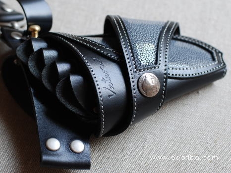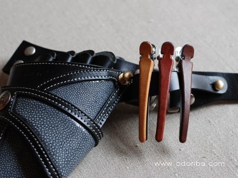 B-02 (Vataru) color 黒 Material エイ革・牛革 Size H210×W130 Scissor 4丁入れ 付属品 ベルト付き ベルト詳細へ 【コメント】 ポリッシュのエイ革を使用しています。 コンチョは本物の5セントコイン (バッファロー柄)を使用。 ホルダー部分は取り外し可能。 裏面ホックが外れるので掃除がしやすい シザーケースです。 33,800円(税込) お買い物ページへ