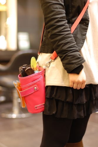 入社して、雑用係→シャンプーマン→カラーリングヘルプやブロー→カット練習→Jrスタイリストと移行するにあたってケースの中身は変わってくると思います。ブローまでは増えていく一方です。いろんな用途に応じて最大ブラシ約5本収納、コーム5本収納可能なジャストサイズ女性がつけても大きく見えない。扱いやすく・歩きやすさも考えました。