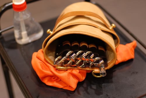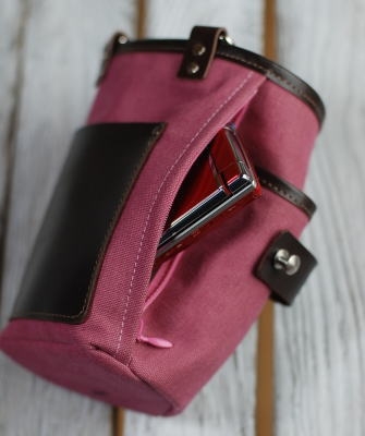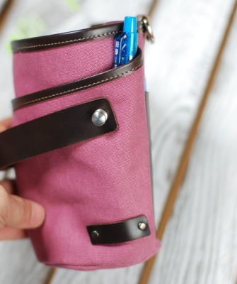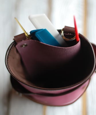 ボトムスに触れる所には、摩擦負けを防ぐ為に、革を装着・ポケットとして配置。